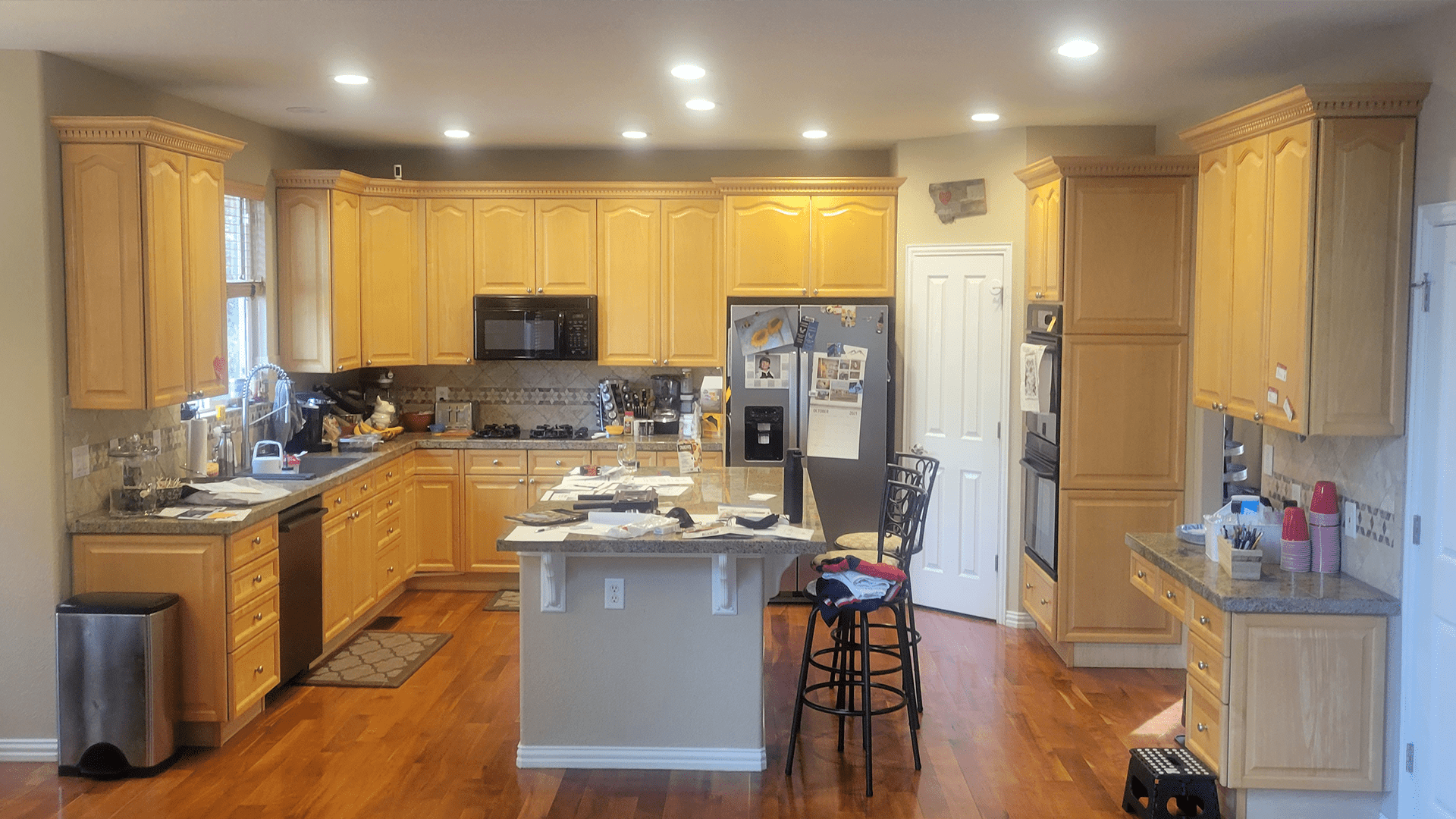 We started with a full demolition, carefully protecting floors and containing dust to keep the rest of the house livable during construction. The old cabinets, countertops, appliances, and backsplash were removed to make way for a brighter, more open design.